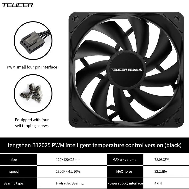 TEUCER PC Computer Case Fan PWM 4 Pin 120mm Silent 12CM Fan CPU Cooler Cooling Fan Cooling Radiator Fan 12V Adjust Fan Speed
